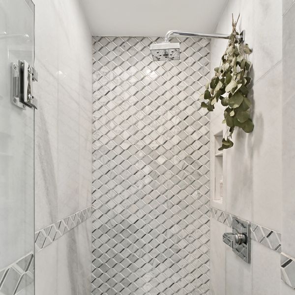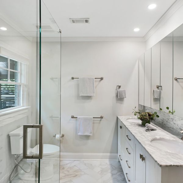 Each of the two primary bedrooms features spa-inspired en-suites with frameless walk-in showers and marble vanities.